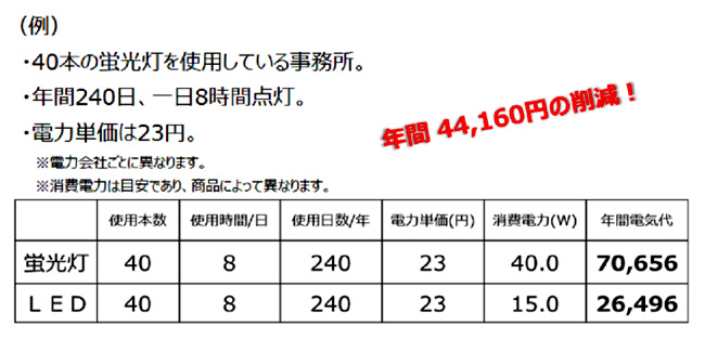 しかも工事は一度すればよいわけですから、10年後にLED照明だけを購入するなら工事費用はかからないので長く使用すればするほど、逆に言えば早く導入すればするほど削減効果は大きくなりますね。